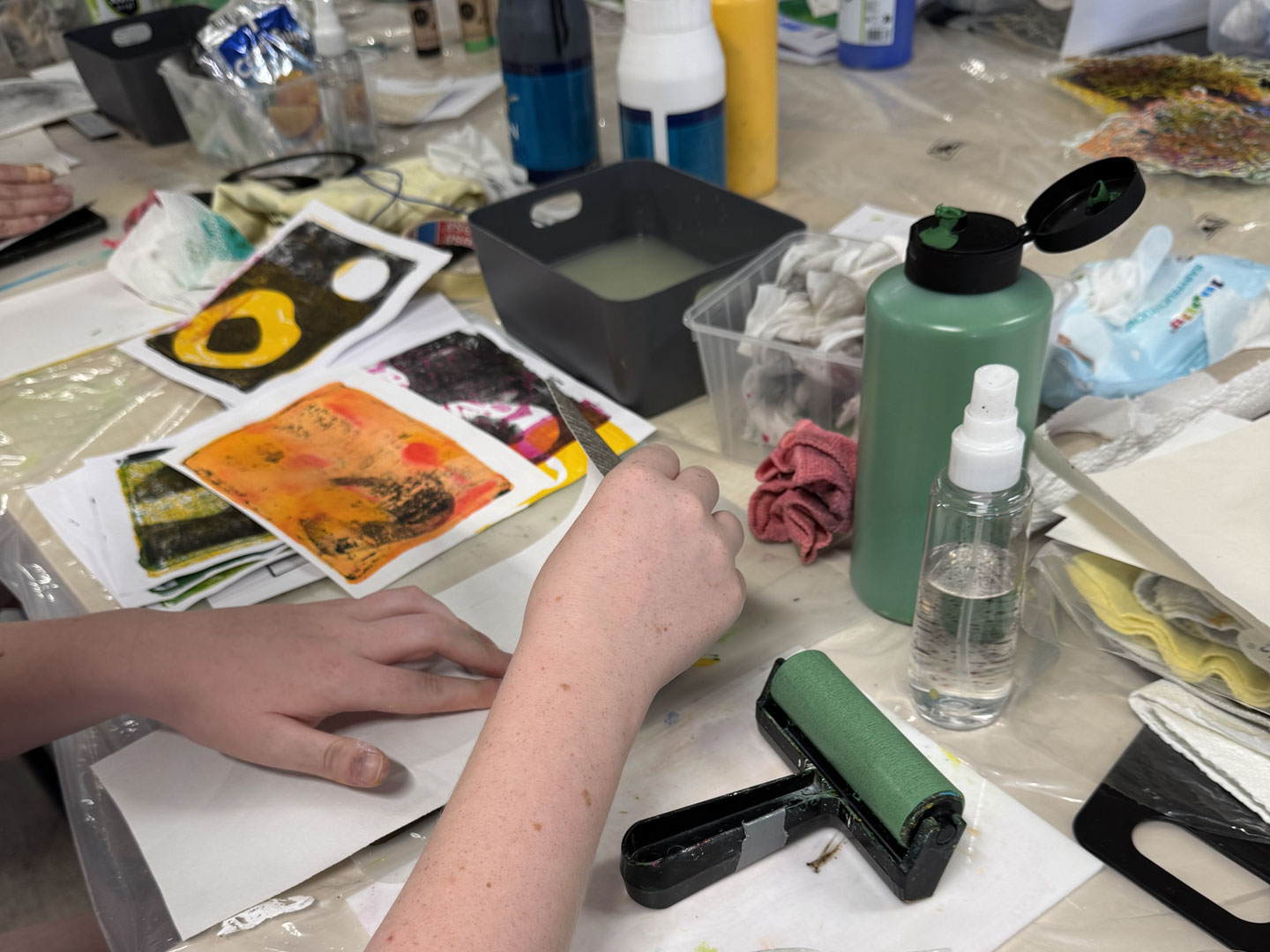 Der Gelli-Print Stammtisch ist ein offenes Treffen für alle, die Freude am Drucken mit der Gelli-Platte haben. In entspannter Atmosphäre kannst du frei arbeiten, neue Ideen ausprobieren und dich mit anderen über Techniken, Materialien und Erfahrungen rund um den Gelli-Print austauschen. Ob du an eigenen Projekten weiterarbeitest oder einfach Lust auf gemeinsames Experimentieren hast – hier ist Raum für kreativen Austausch.