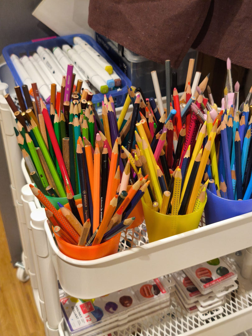 Ob freies Zeichnen, Malen oder Collagieren ‒ in der Farbenwerkstatt im OG des Haupthauses kannst du verschiedene kreative Techniken ausprobieren oder verfeinern.